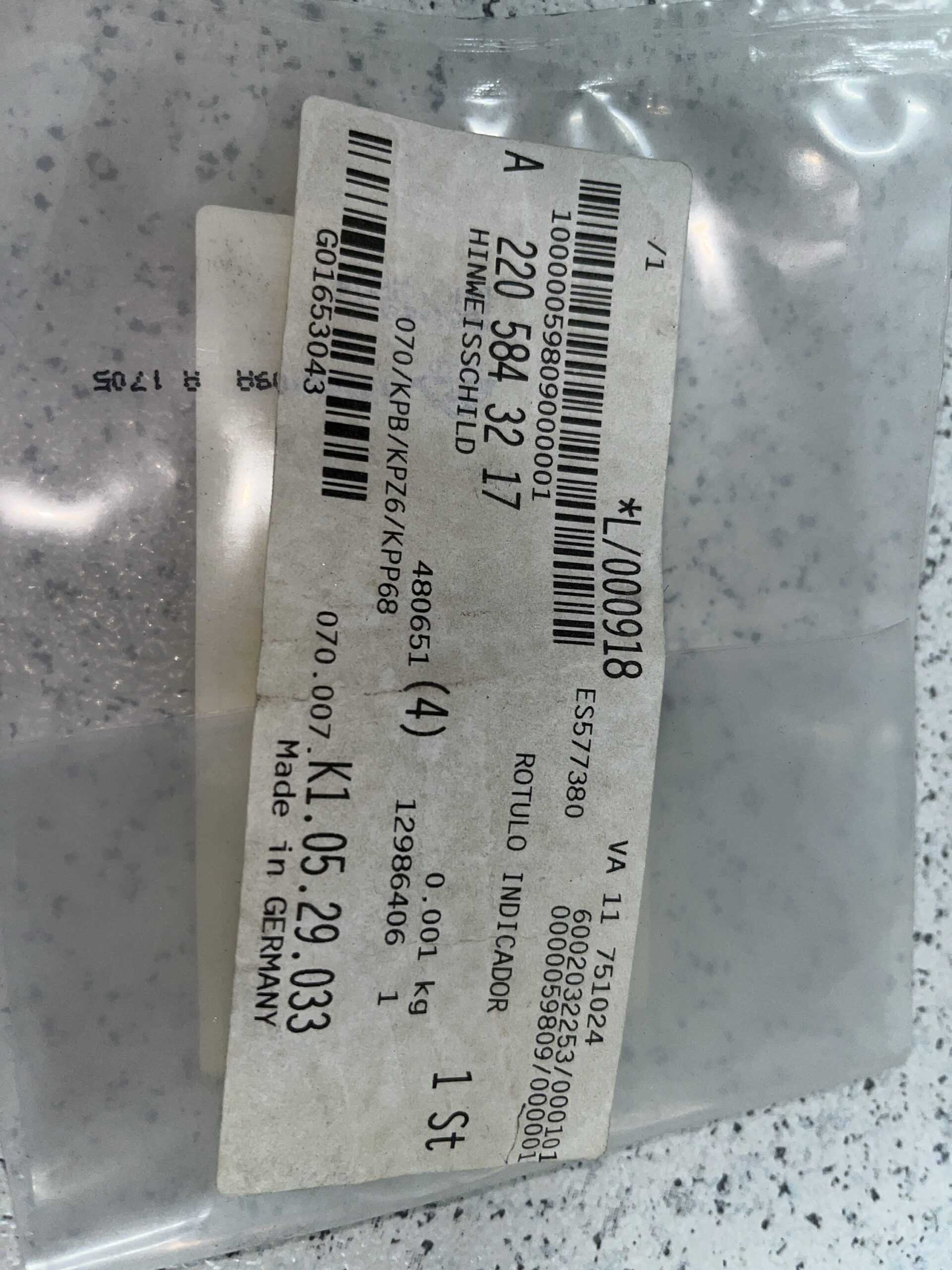 Quantidade de Etiqueta de informação Mercedes A2205843217