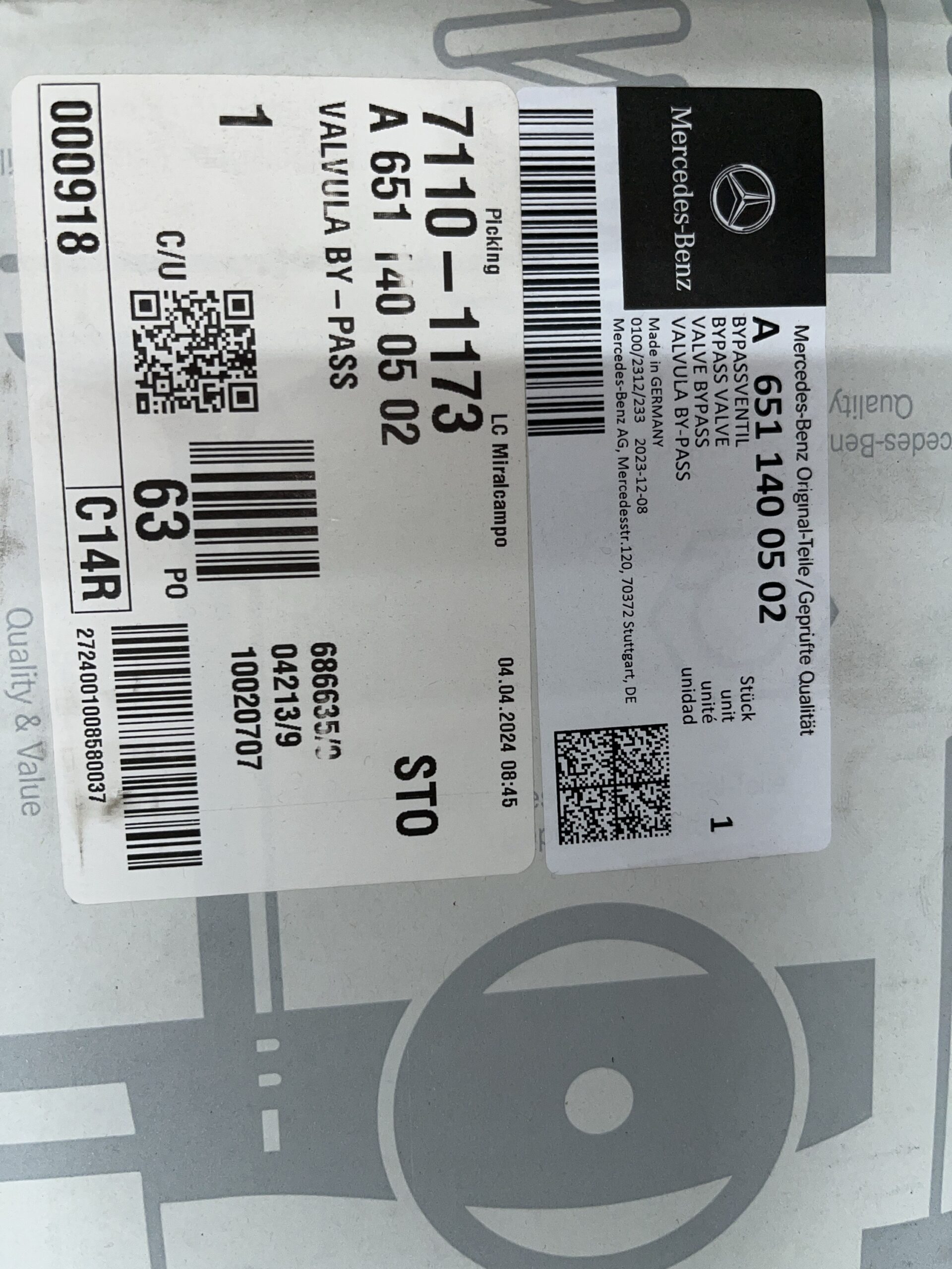 Vavula bypass Mercedes A6511400502