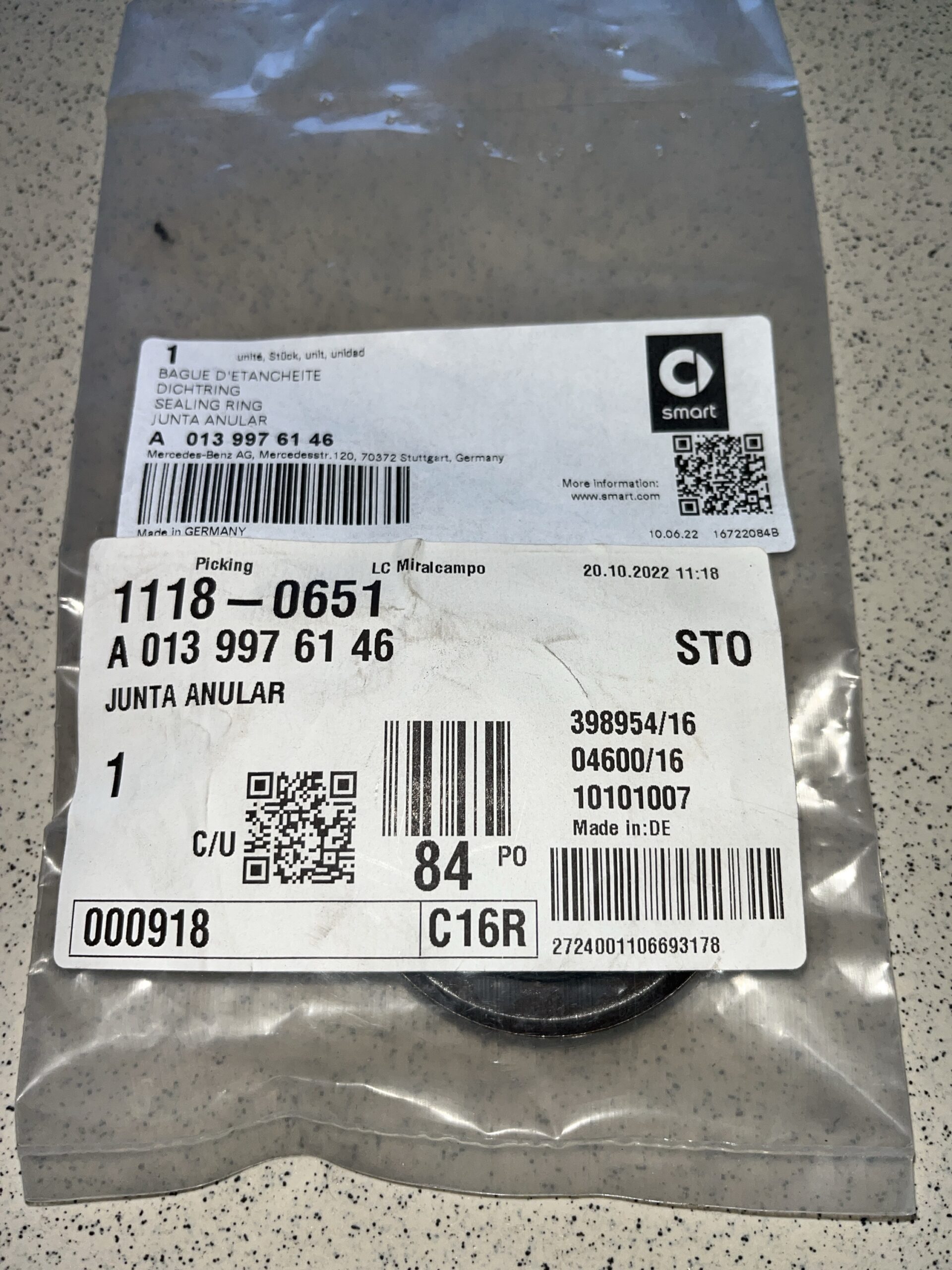 Quantidade de Anel de vedação Smart A0139976146